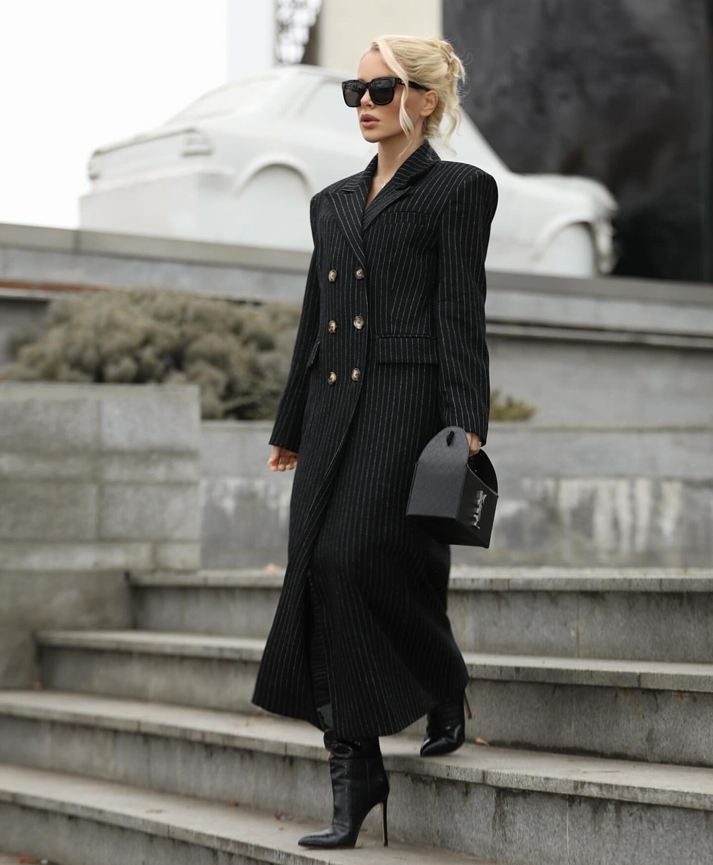 Indulge in luxury with our Sheila Two Piece Set. This sophisticated black pinstripe set includes a flattering mini dress and a matching longline blazer, perfect for any occasion. Show off your elegant style with confidence and sophistication.