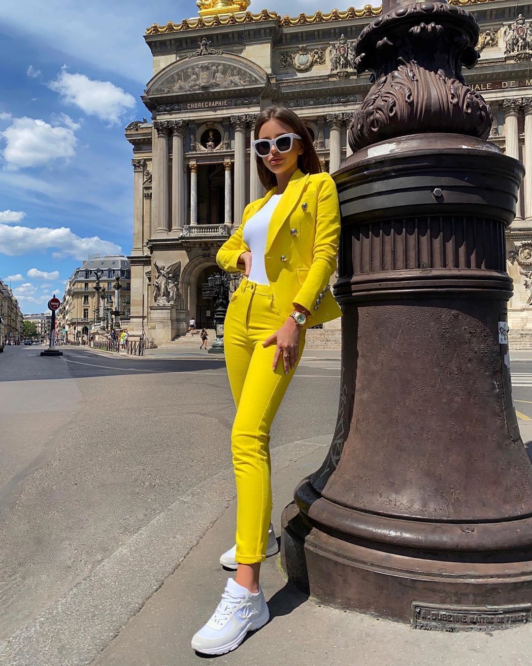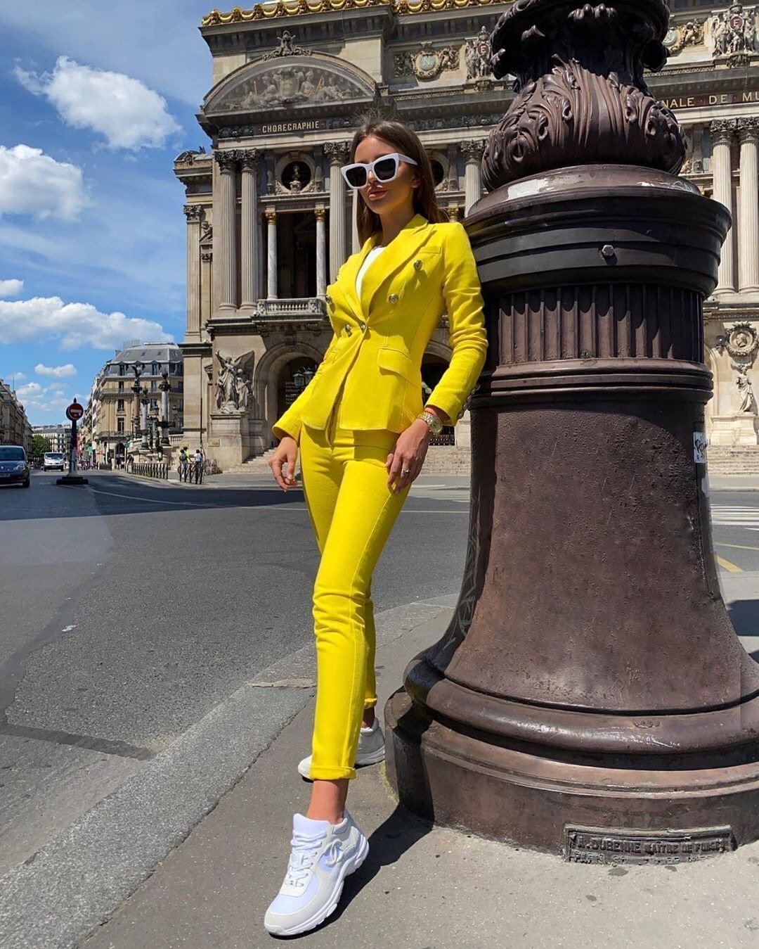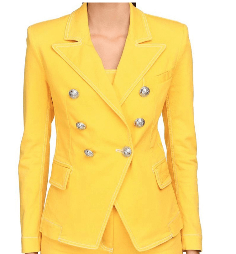 Add some colour to your wardrobe with our Shira two piece set! Featuring a structured fit with oversized buttons and fitted matching pants. Style with Pumps for a chic look!