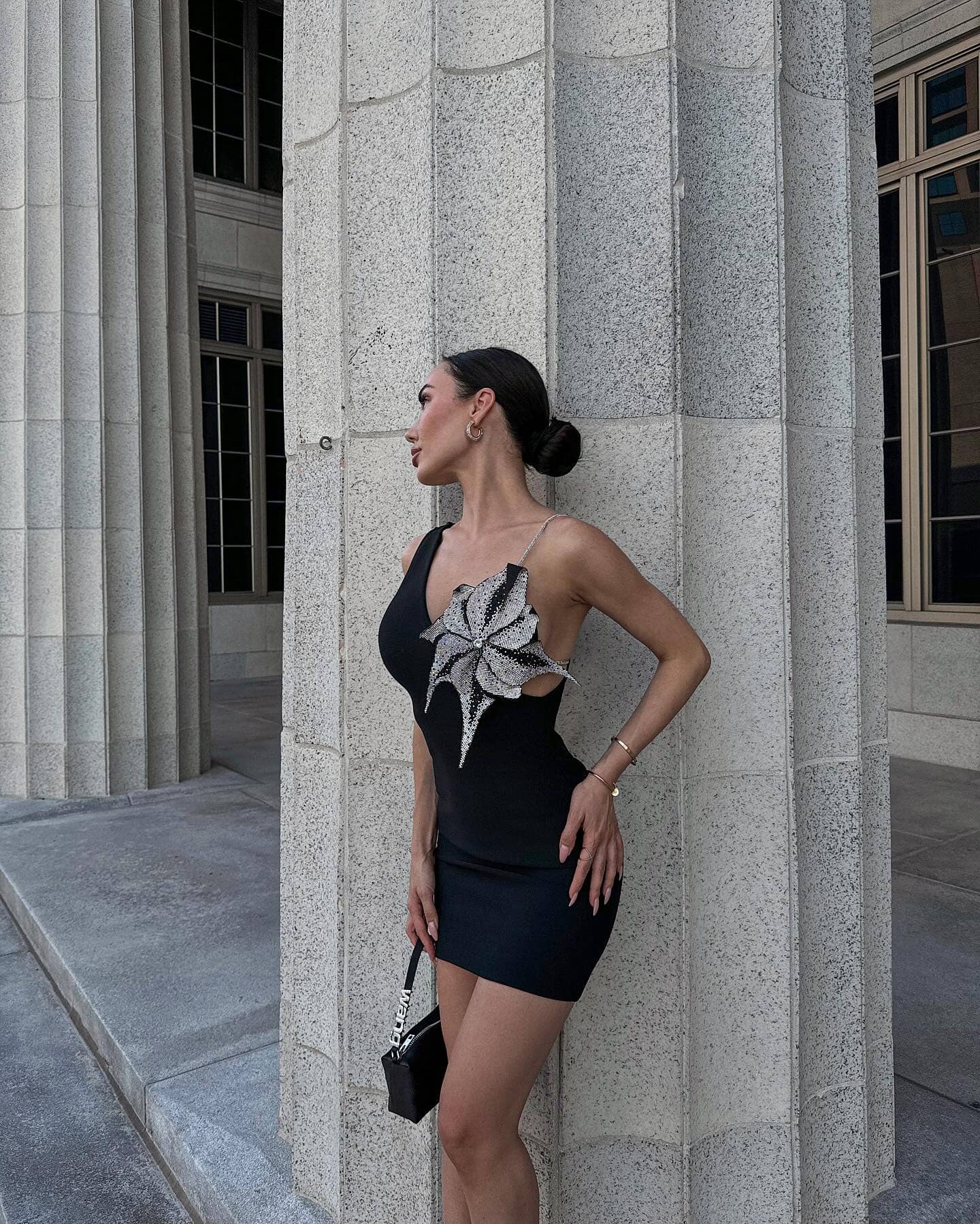 A timeless staple, the Sinta Mini Dress is an elegant and sophisticated piece. Crafted from black fabric with a striking silver flower adorning the chest, this piece exudes luxury. A perfect addition to any wardrobe, the Sinta is the epitome of luxury.