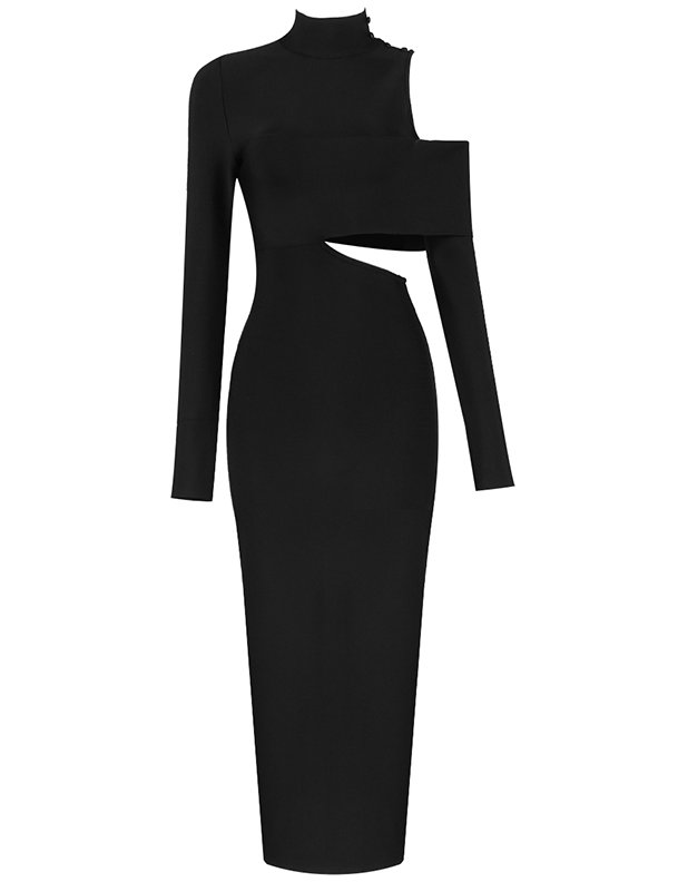 Keep your look super chic with out Sue midi dress. Featuring an asymmetric style with cutouts style. Style with statement earrings and heels and get ready to have all eyes on you!