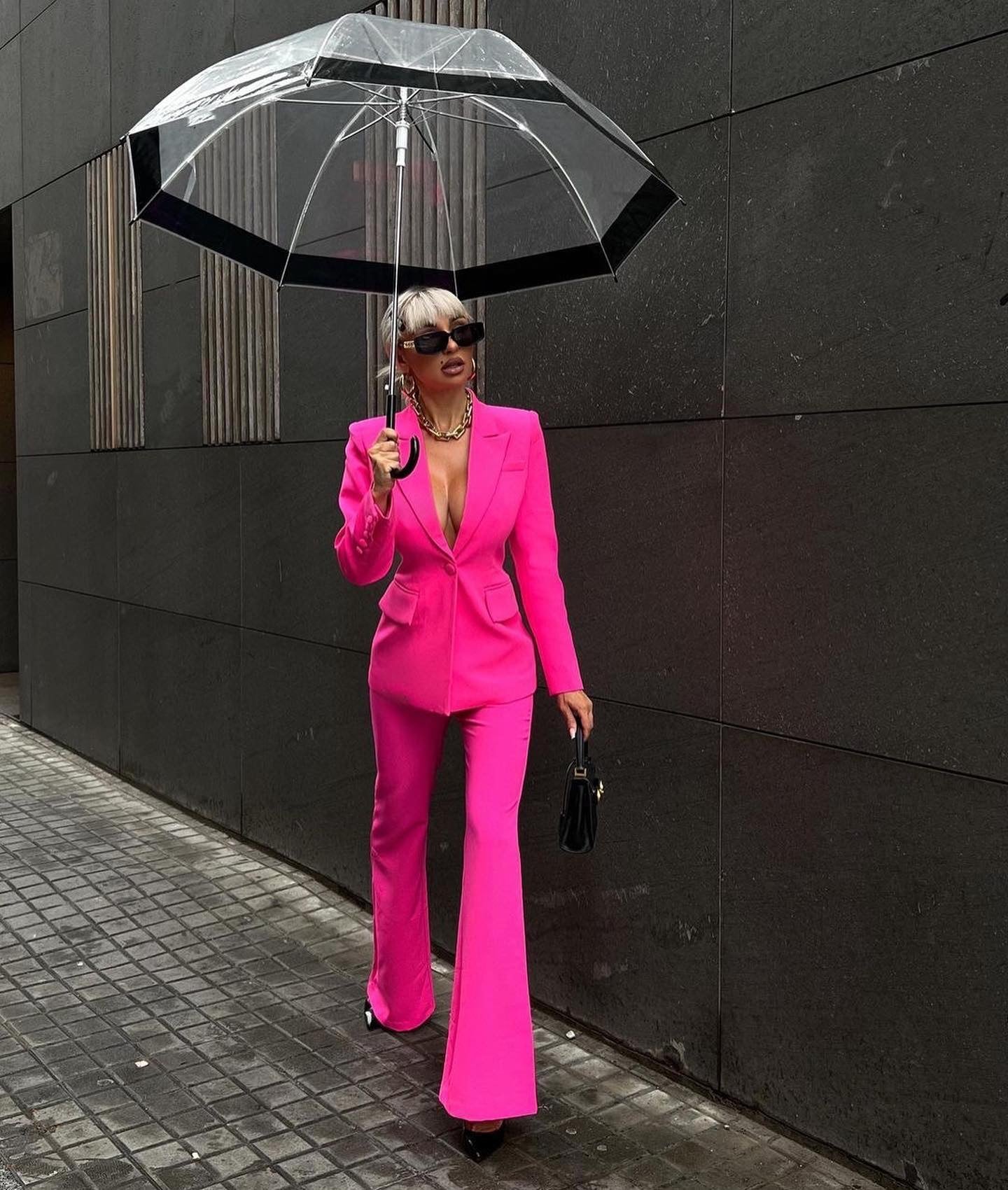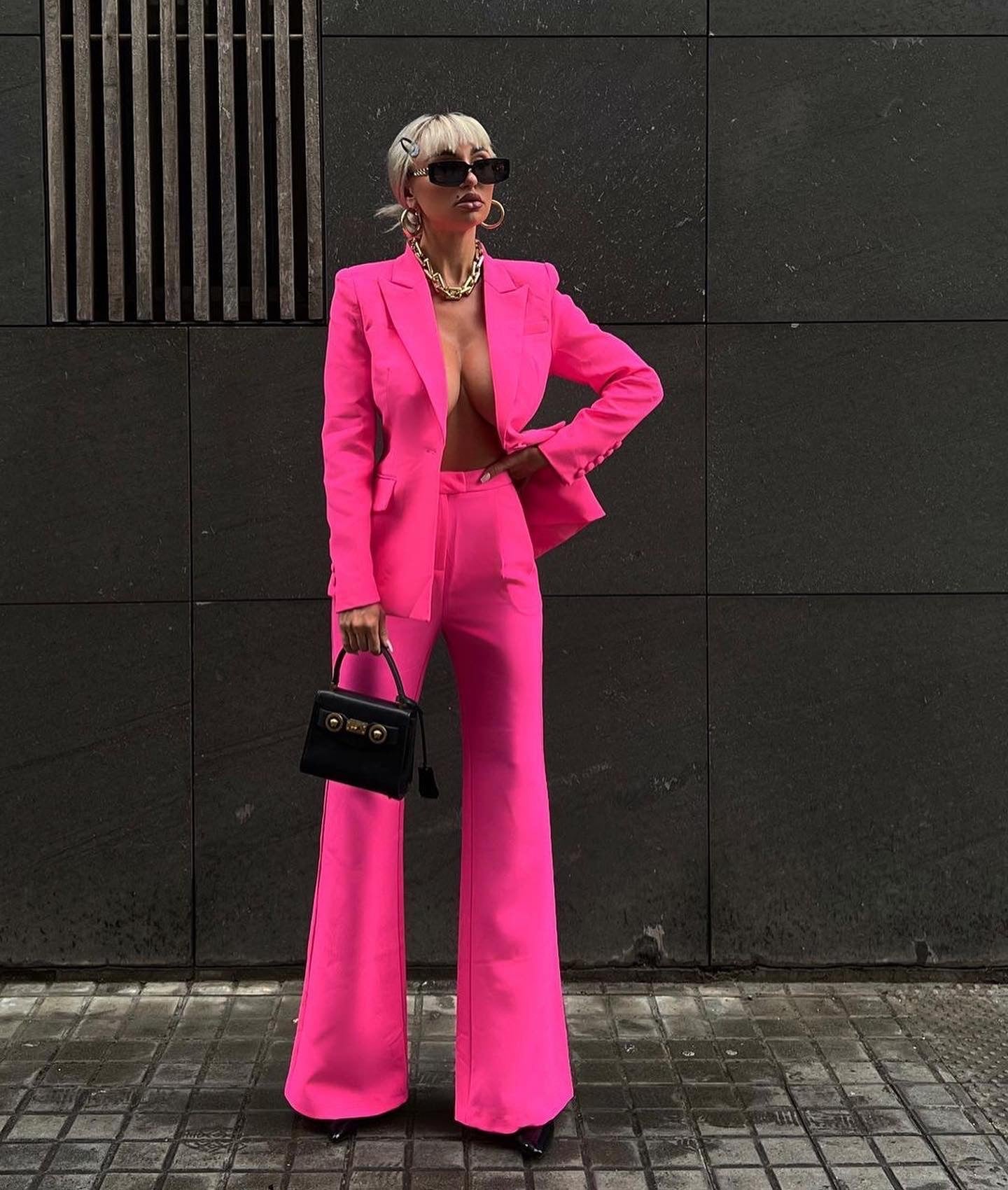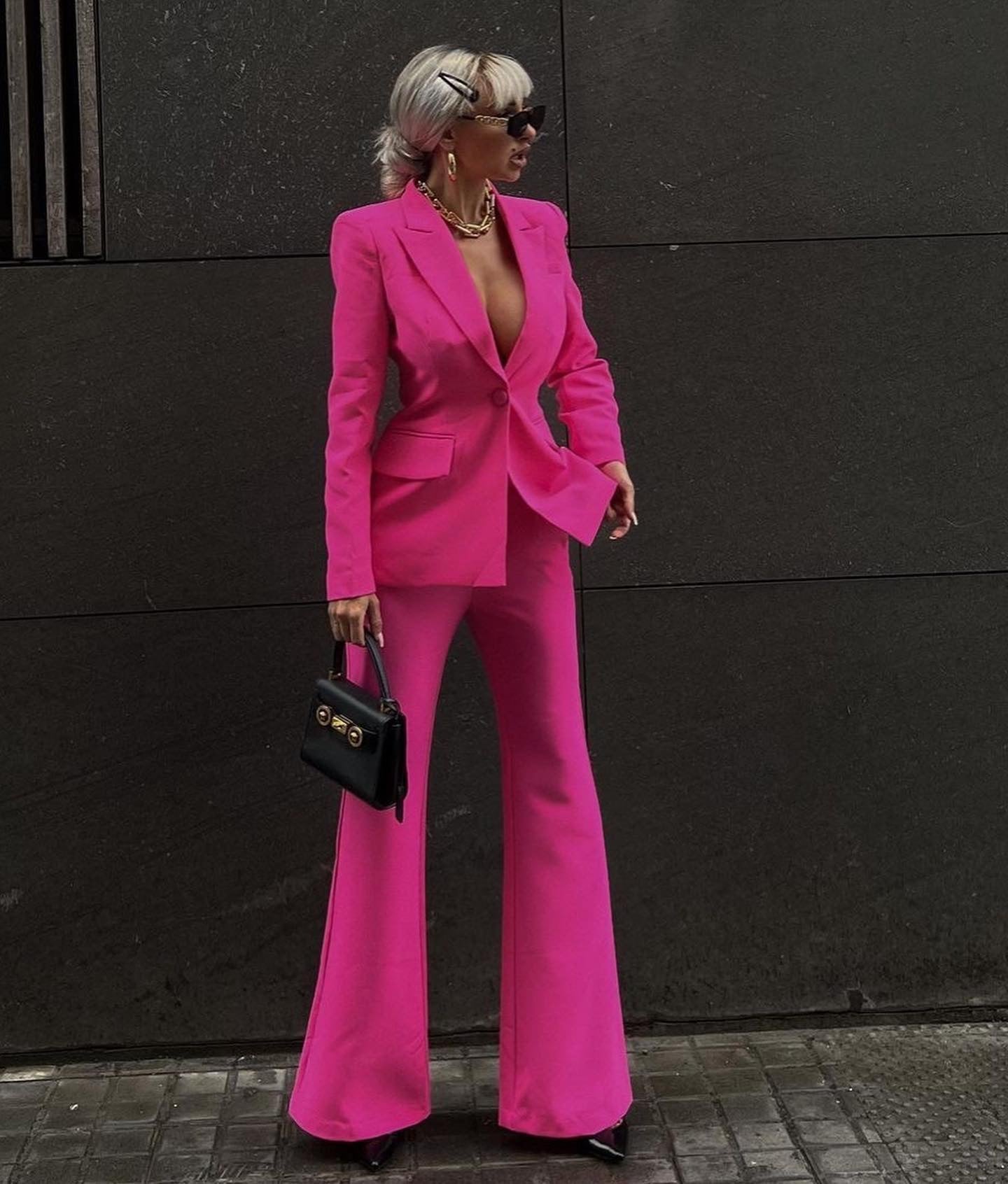 Our Khalia Two Piece Set comes in a stunning pink color! This pant set consists of a fitted blazer and an ultra high-waist pant. Style with heels for a sexy look!