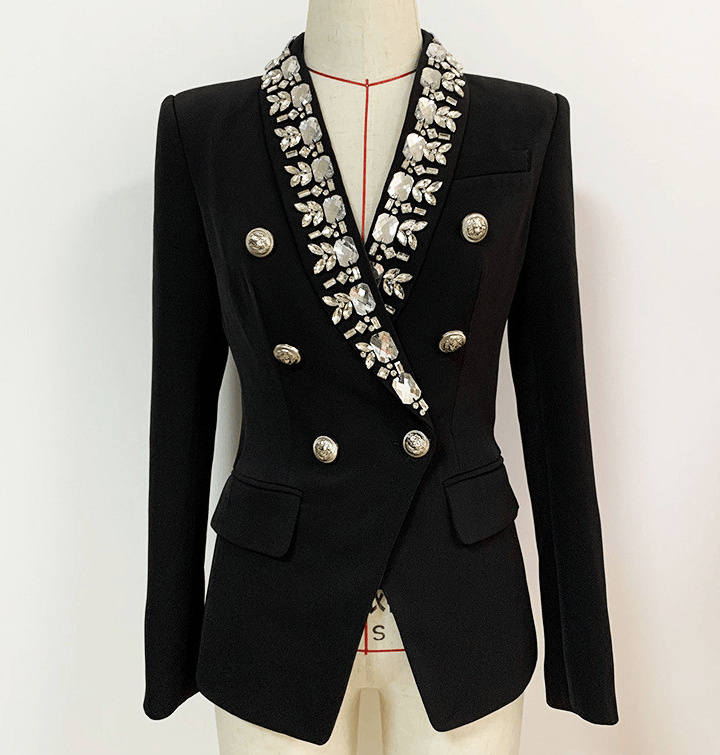 Stay bossy in our Yamila blazer! Featuring rhinestone oversized details. This blazer will look great on any body shape!